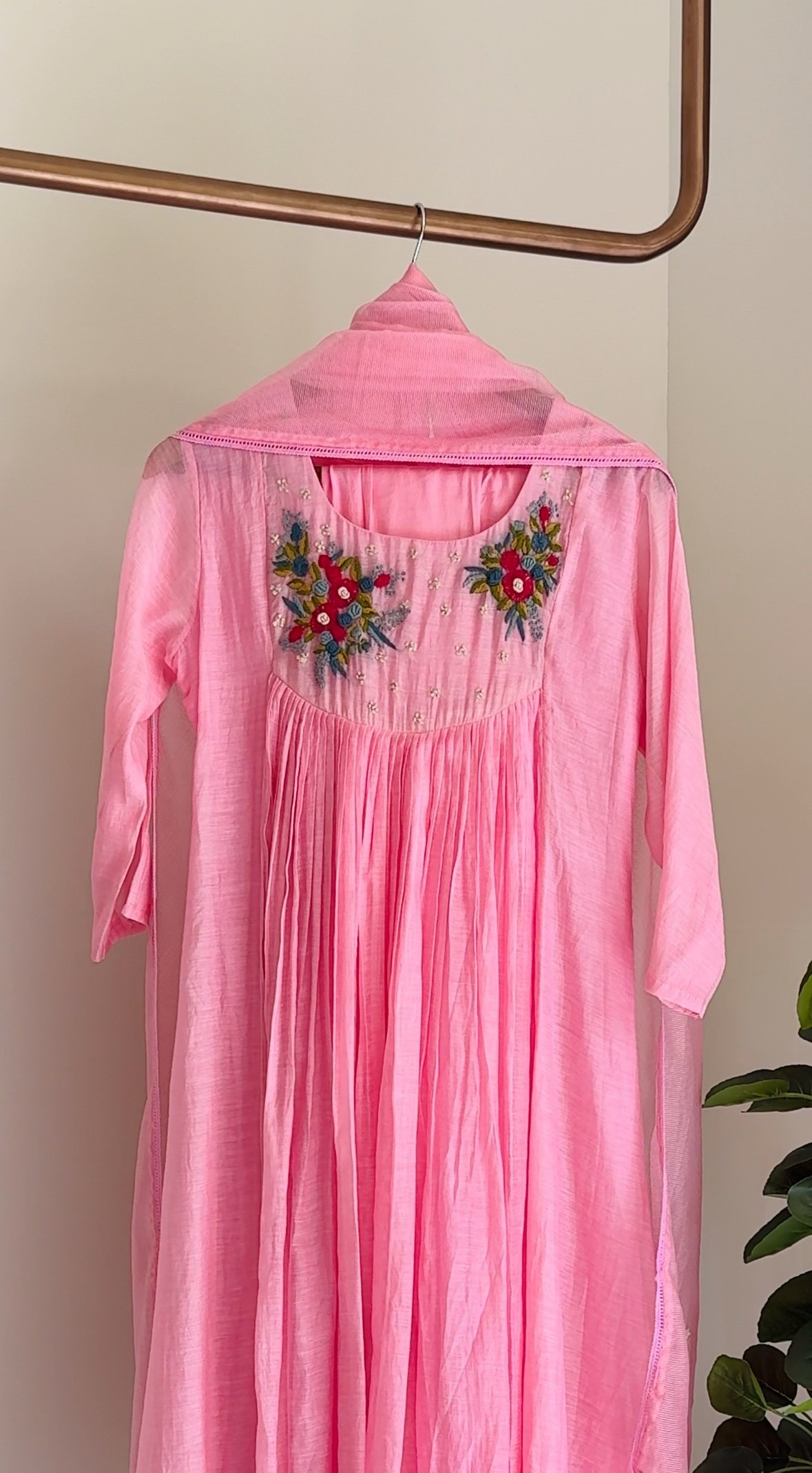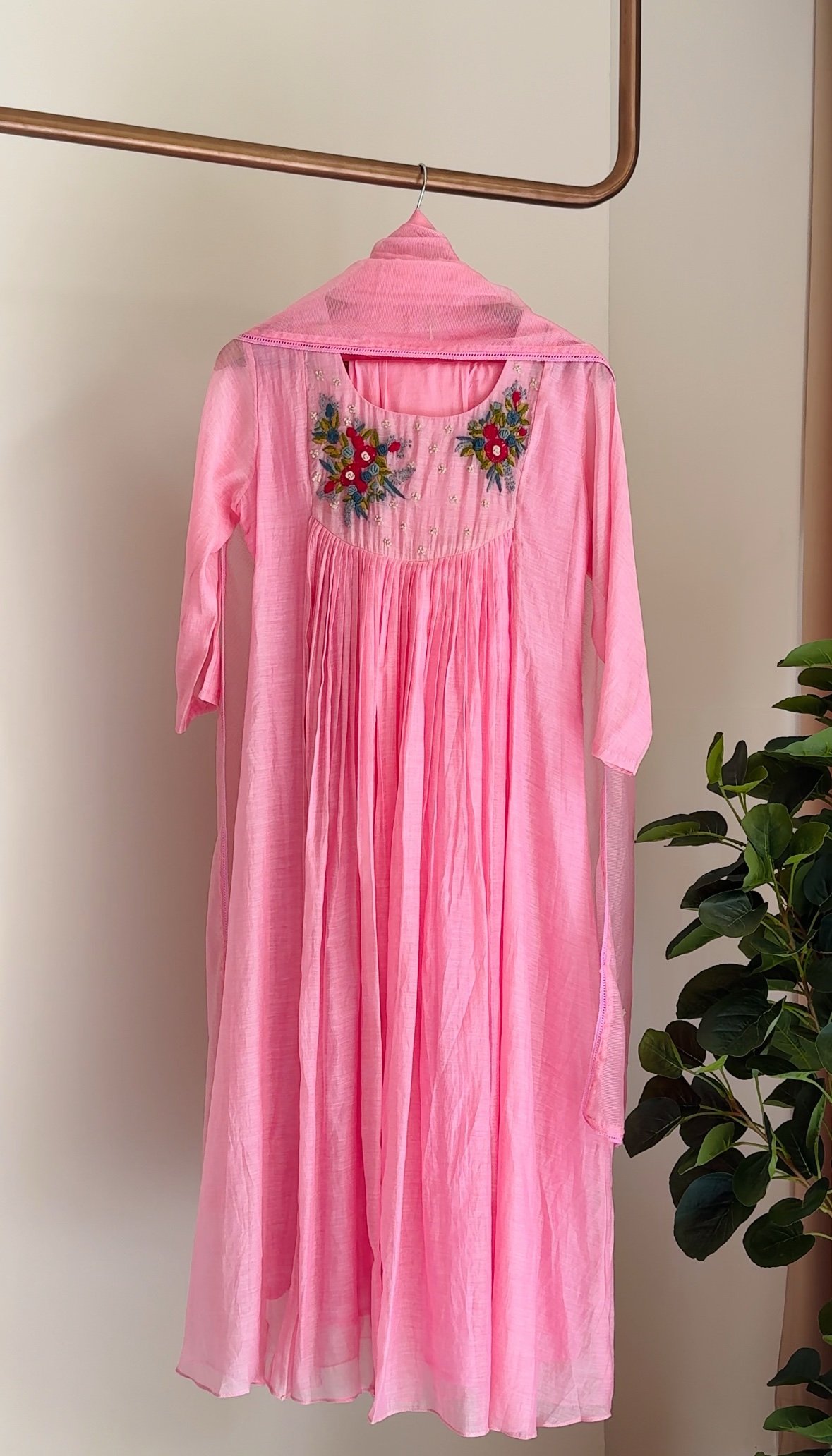 Beautiful Mul chanderi suit paired with rayon bottom and a matching dupatta